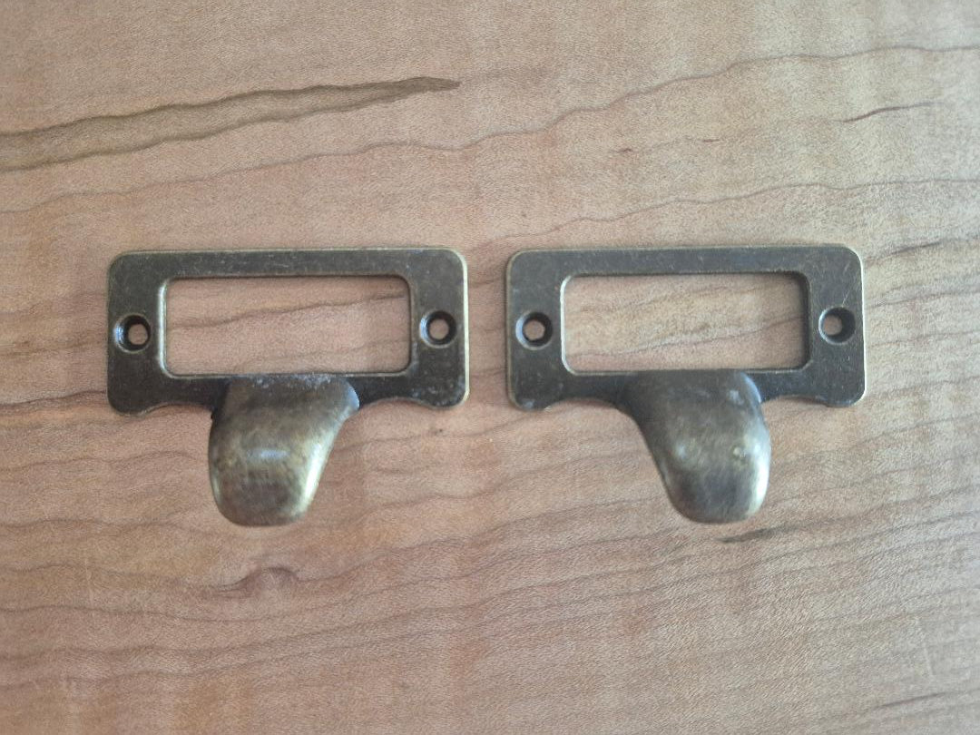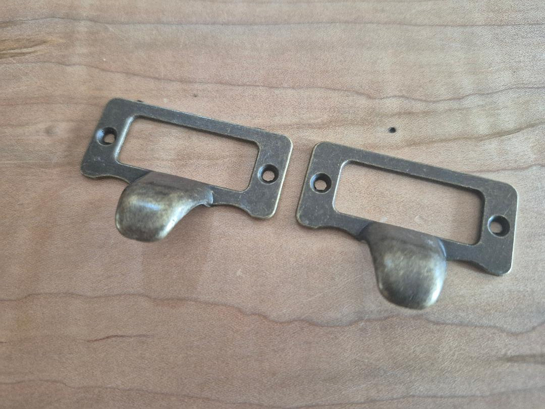 Antique apothecary 2pk card drawer pulls. Approx 1" size