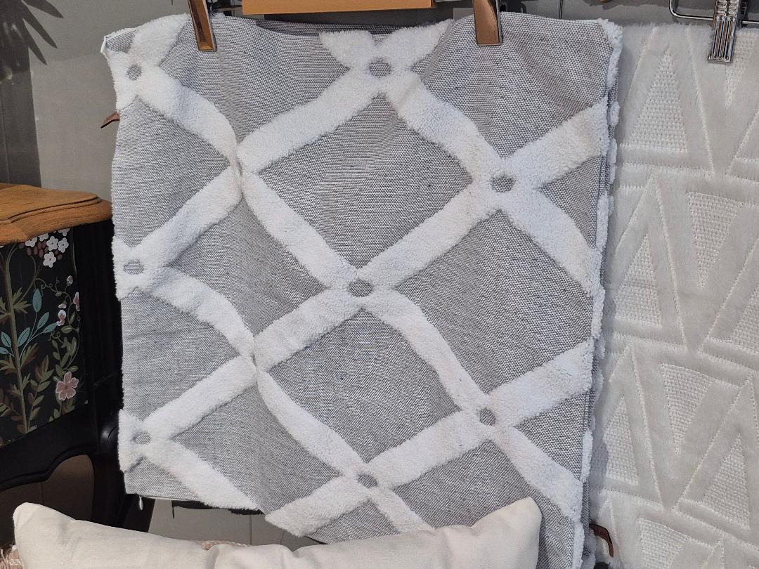 Diamond patterned white and grey textured 18"x18" cushion covers.