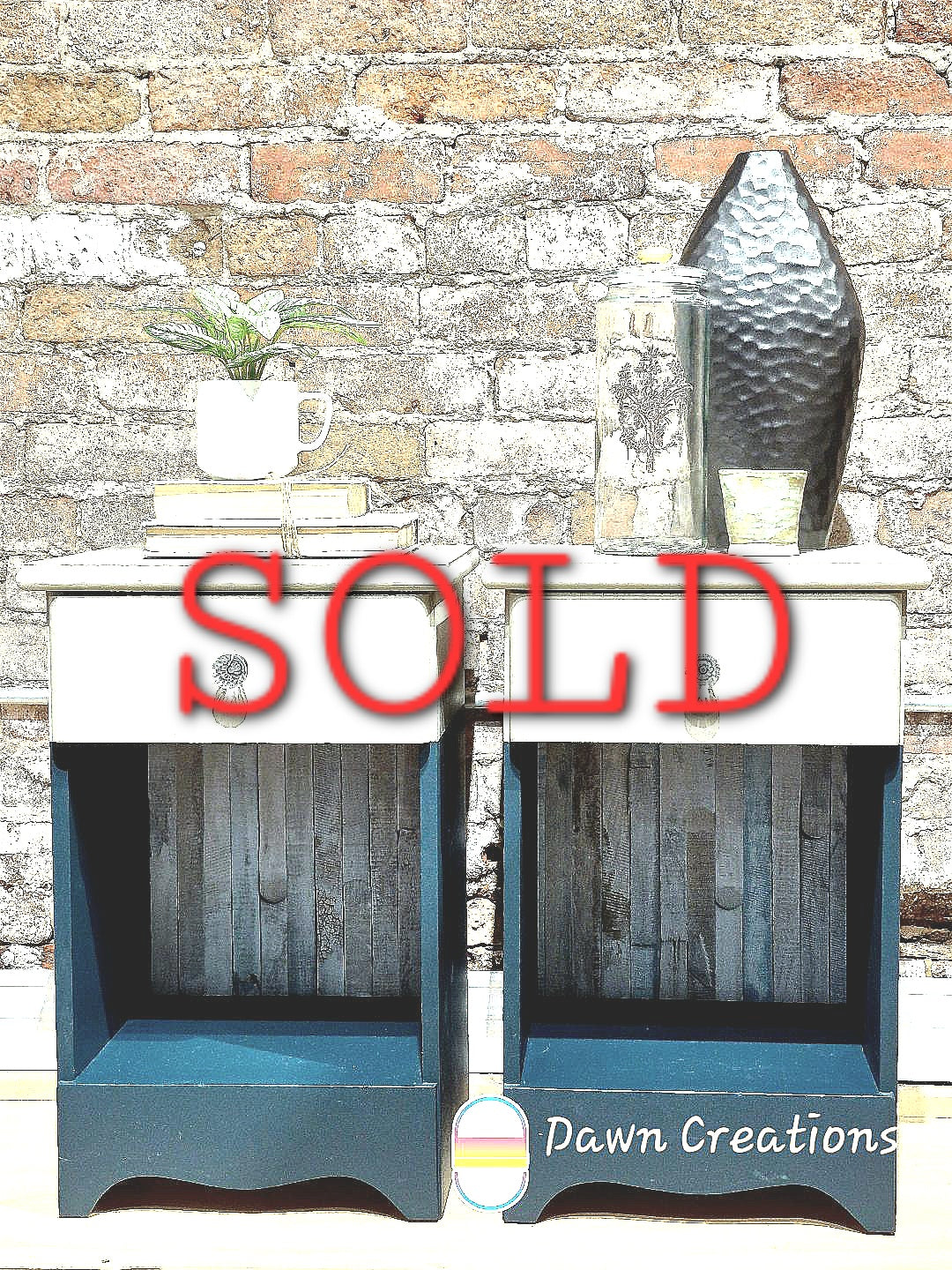 Pair of simple modern end tables with elegant details. Single crystal knob, birch bark lined drawer and back panel.