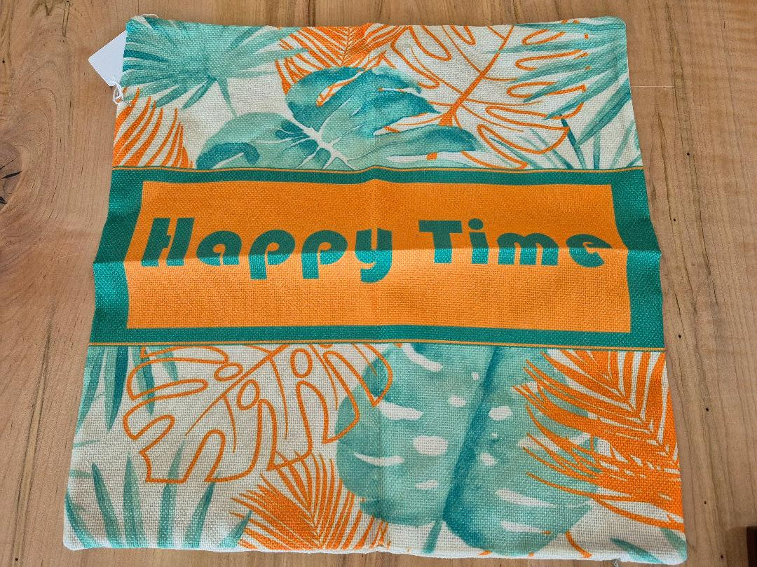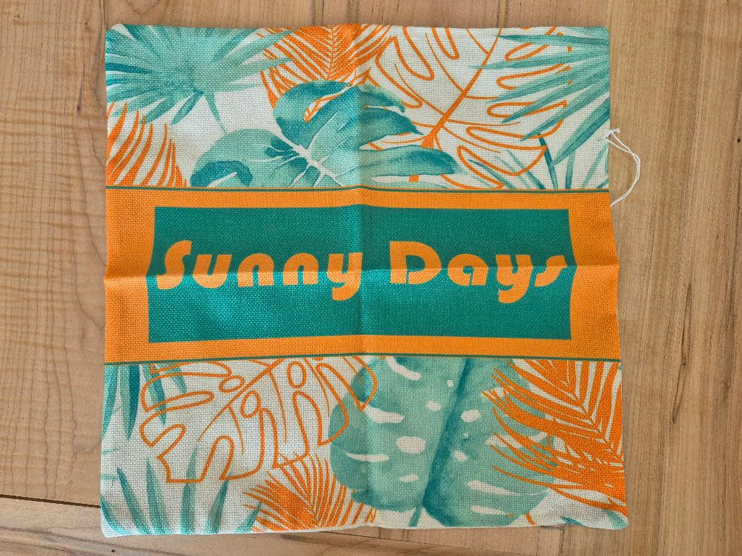 Bright summer cushion covers with fern foliage design and inspirational summer words.