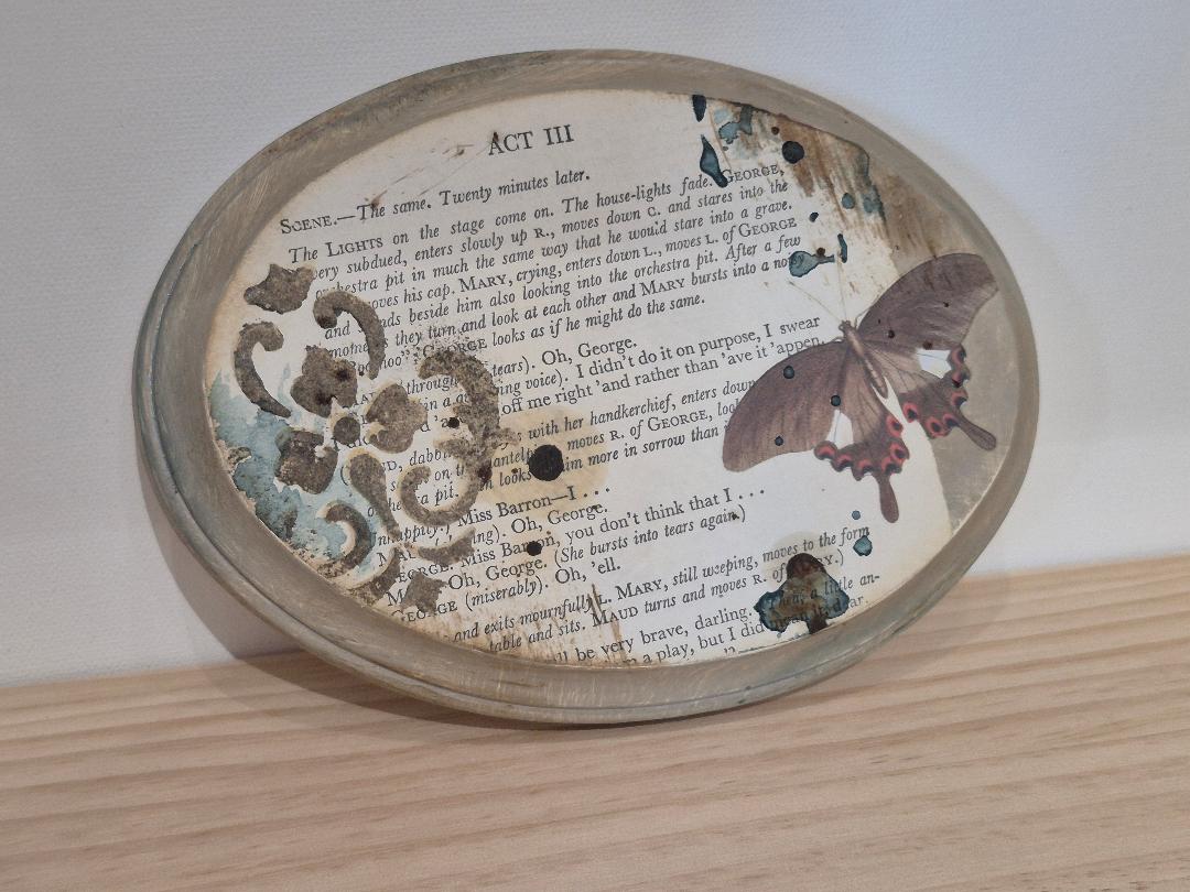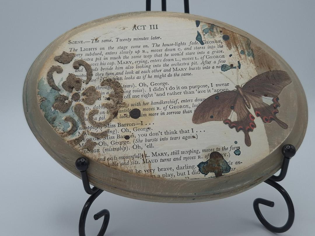 "Act III" Rustic oval wall plaque with butterfly accent.