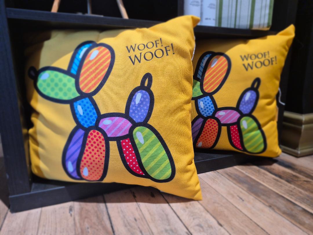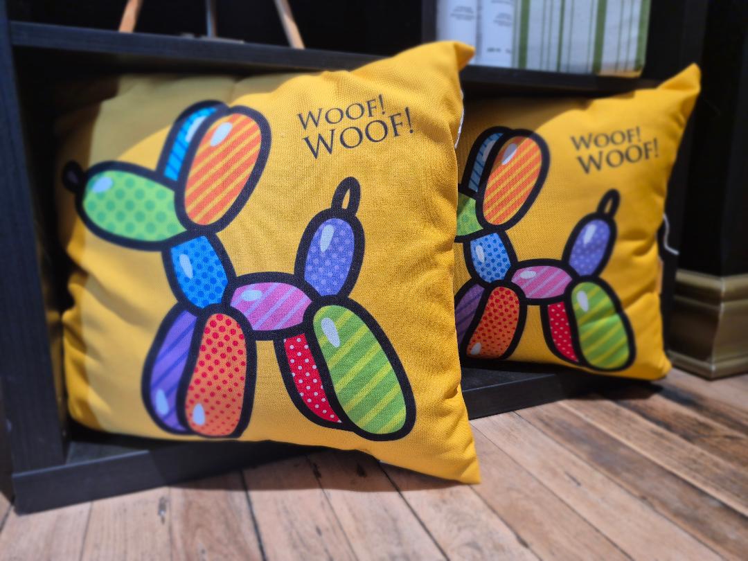 Bright, fun and whimsical balloon dog accent cushions. Bring colour to any space with a little humour! Woof woof!!!